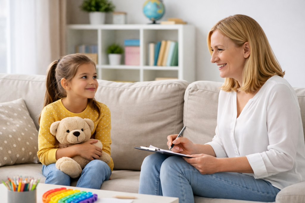 Sessions are adapted to the child’s age and may include conversation, gentle therapeutic activities, and practical strategies to support emotional well-being.